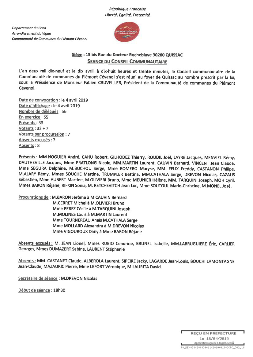 de communes du Piémont Cévenol..