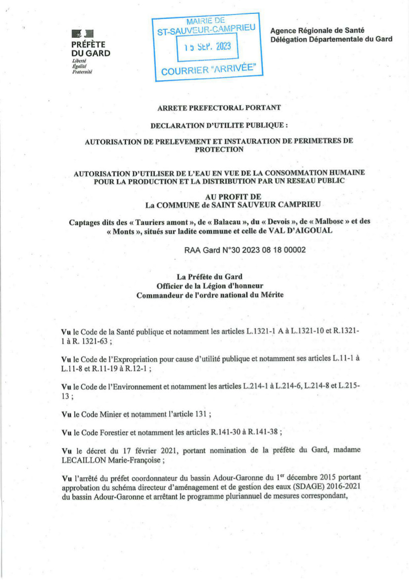Nous ne pouvons qu'exprimer notre gratitude au pôle Santé du Tribunal de Grande Instance de Marseille, au Tribunal Administratif de NÎMES, à l'ARS, au service de l'eau du département du Gard, aux agences de l'eau Rhône- Méditerranée-Corse et Adour-Garonne pour avoir accompagner les municipalités gardoises qui ont su améliorer la qualité de l'eau destinée à la consommation humaine.