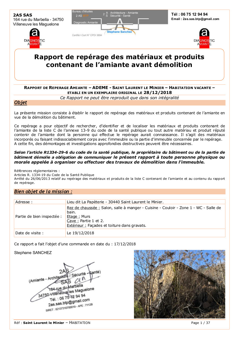de Cevennes - Plomb - Arsenic - Cadnium -antimoine - thallium